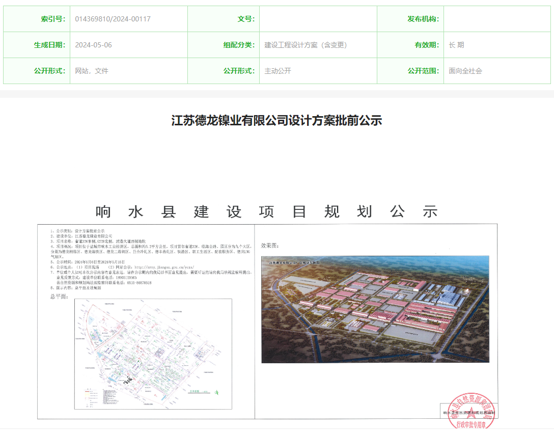 江蘇德龍鎳業(yè)有限公司設(shè)計(jì)方案批前公示